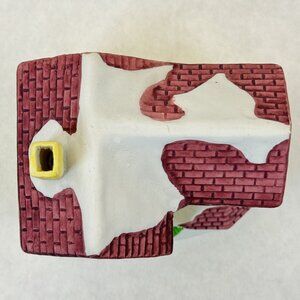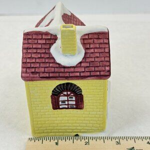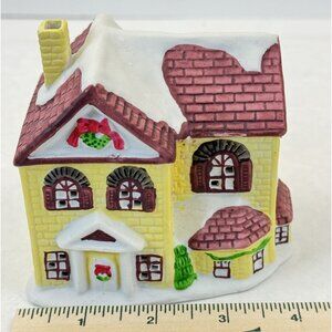 Vintage Lotus Ceramic Christmas Village Yellow House Figurine Snowy Accents 4"