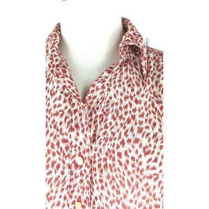 Vintage Loubella red animal spotted print sheer billowy ruched waist blouse 10