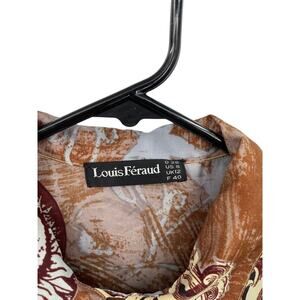 Vintage Louis Feraud silk dress. Lined. Hidden buttons on front. Belt loop on the front but the belt is missing. The hem has come undone on some of the bottom. Size 8.