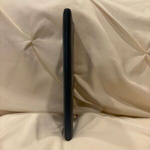 Authentic vintage Louis Vuitton made in Spain blue Epi leather checkbook style long wallet. Inside has 6 card slots, 3 bill compartments and a checkbook compartment. Unisex design.