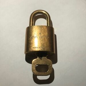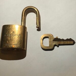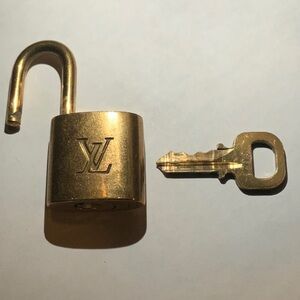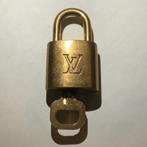 This Louis Vuitton Brass '320' Padlock in Goldtone with Goldtone Key is in excellent preowned condition. These pieces include: