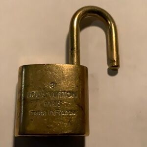 Padlock: Crafted from brass in goldtone coloring with engraved "LV", on the front and "(R) LOUIS VUITTON made in France" on the back, hallmarked with "331" near the lock.
