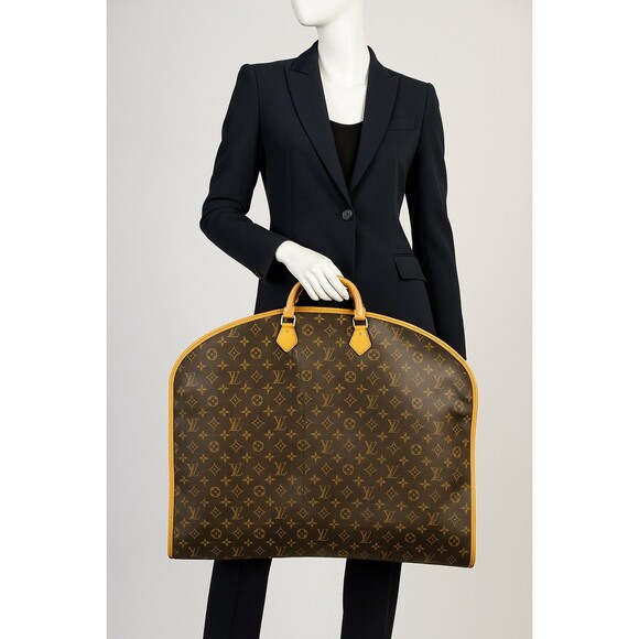 Made from durable Monogram coated canvas with vachetta leather trim and solid brass hardware, this rare travel set exudes sophistication. Dual handles make it easy to carry folded or hang open, and the interior is clean, odor-free, and well cared for.