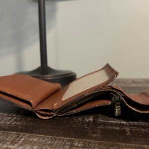Authentic Louis Vuitton Koala wallet, circa 2008. Coated monogram canvas. Back zipper, interior open, nine credit card slots, one bill compartment, interior ID pocket, gold tone, push lock closure. cracking at edges.