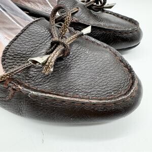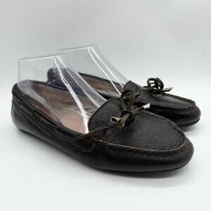 Vintage Louis Vuitton Leather Driving Moc Loafers Bow Tie Dark Brown Size 40
