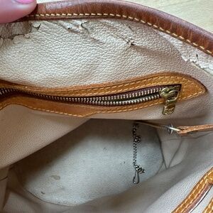Vintage Louis Vuitton Monogram Petit Bucket 23 Bag. Well loved piece. Exterior is in good condition with minimal staining/wear noted as pictured. Stitching is in good condition. Internal lining is showing some significant wearing with peeling of the leather acknowledged on the upper portion of the bag. Zipper is working and in good condition in the internal pocket. Overall exterior monogramed portion is in good condition. Adjustable straps. Please let me know if you'd like any additional photos or information on this piece. Staple to any wardrobe! Make me an offer!