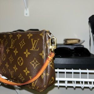 Beautiful vintage Pochette, has been well loved and taken care of! No flaws in the zippers or stitching. The strap has great patina. Ask any questions!