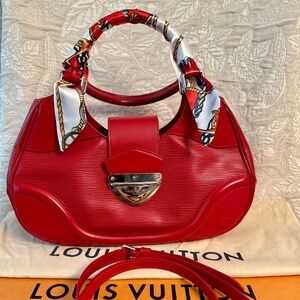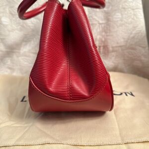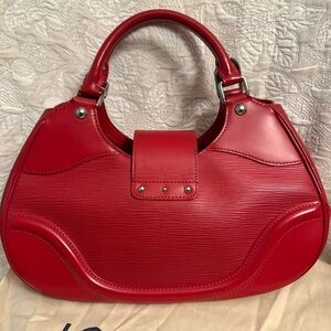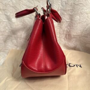 Authentic LV Montaine Sac Epi Leather handbag in Red.