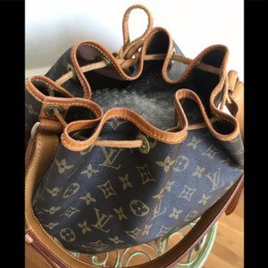 Draw string may need to be replaced at some time it does have cracks which is normal. Canvas and all Vachetta on point. For the woman on the go and as a statement piece. Fits everything but the kitchen sink! Black mark on corner as shown. AR0977