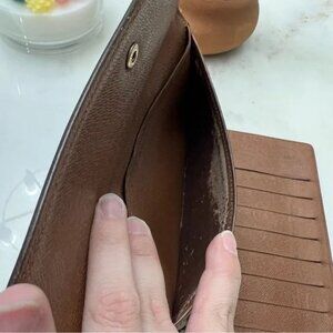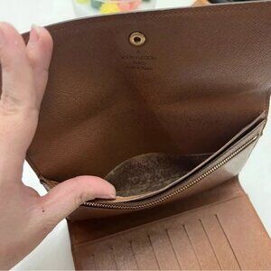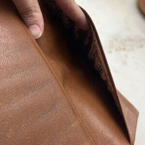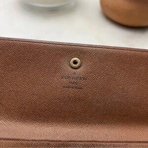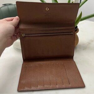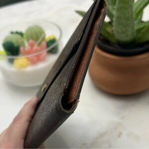 This vintage Louis Vuitton Pochette Passport Trifold Wallet Organizer Case features the iconic monogram canvas, perfect for organizing your essentials. It serves as an excellent car document organizer, wallet organizer, or travel wallet with ample space for your passport. The wallet has been cleaned and the hardware polished, ensuring it looks great for use.