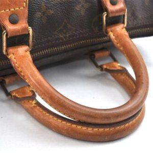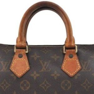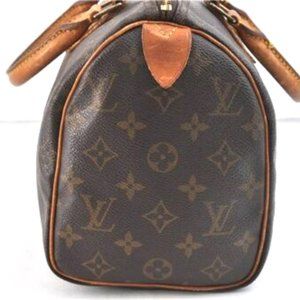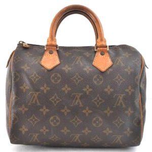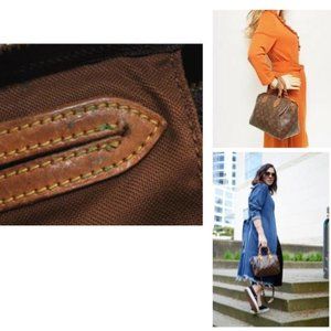 Vintage Louis Vuitton Speedy 25 Monogram Logo Satchel Boston Bag Brown Gold Tan