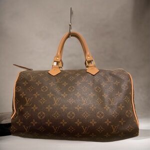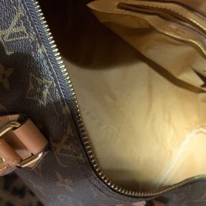 Pre owned with hardware. Some handle damage and small rip on the top visible on picture.