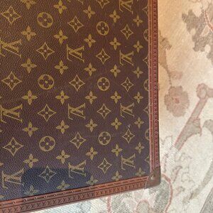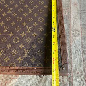 This authentic vintage hard case Louis Vuitton Monogram suitcase measures 25.5 inches by 17.5 inches and 7 inches deep.  The case is still in very good condition considering its age and usage, still very sturdy, strong and functional.   Overall a wonderful vintage item to continue to treasure.   Please see our other listings for more vintage suitcases.