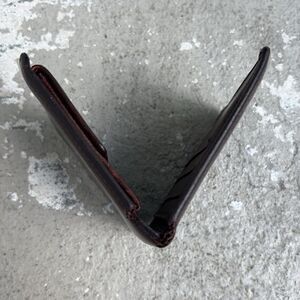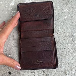 Please look at the pictures. This is a vintage wallet and show signs of wear. Inside could be reconditioned or stained. House cracking on the fold.