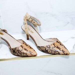 Vintage Louise Et Cie Genuine Snake Skin Leather Kitten Heel Buckle Closure Open Back Size US 9 Eur 39