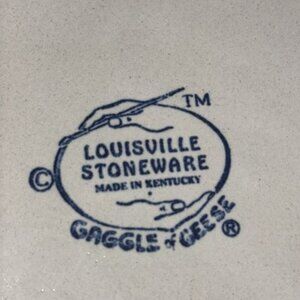The Louisville Stoneware dinner plate features a charming design of geese, bringing a whimsical touch to your dining table. Crafted with care in Kentucky, the plate's blue and white color palette offers a classic appeal. Ideal for those who appreciate vintage charm, this plate is both decorative and functional.