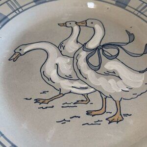 Vintage Louisville Stoneware Gaggle Of Geese Dinner Plate 10" Blue & White Made