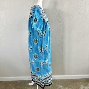 Vintage Loungees Small Blue Butterfly Mumu House Sleep Dress Kaftan Pockets