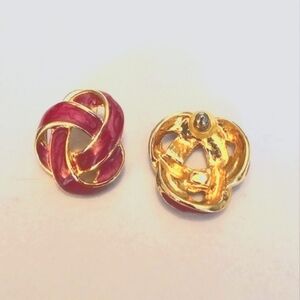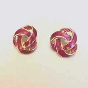 Beautiful Vintage Love Knot Earrings Purple Enamel and Gold Tone Twist Pierced