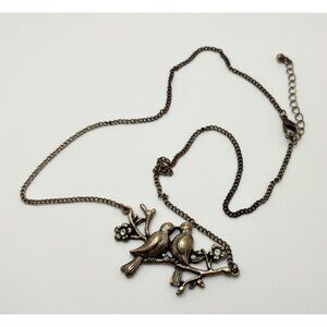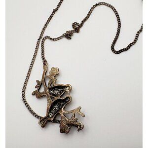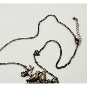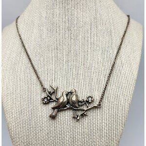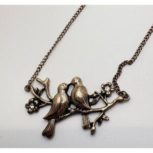 Vintage Lovebirds Pendant Necklace Sitting on Branch Rhinestone Accents