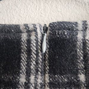 Black and white plaid wool exterior, fully lined interior