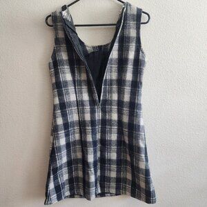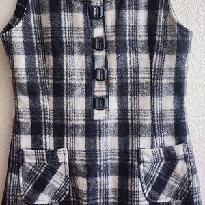 Vintage Lover's Dress Womens Medium Black White Plaid Wool Sleeveless Mod 60s Pockets