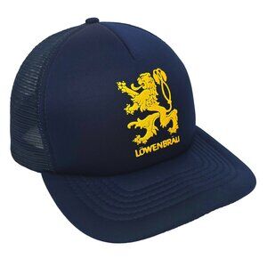Vintage Lowenbrau Beer Hat Trucker Mesh Snapback Cap Blue Gold Lion Logo Brewery (HT-11)