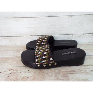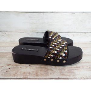 Vintage Luca Stefani Y2K Black Beaded Slide Sandals