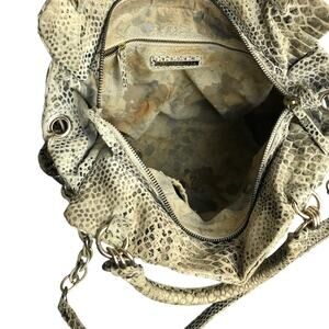 Vintage Lucca Elliott Handbag Womens Brown Faux Snakeskin Disco Retro Boho Chain