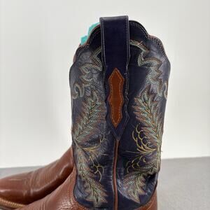 Vintage Lucchese 2000 Boots Womens 6.5B Brown Blue Leather Western Lone Star