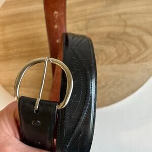 Vintage Lucchese USA Black Genuine Leather Western Belt Size 34/Large