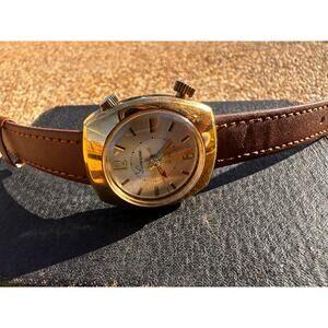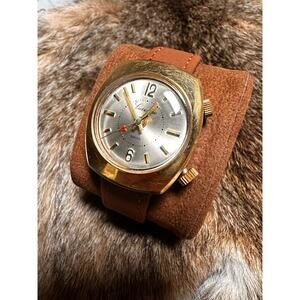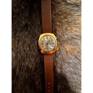 Vintage Lucerne Swiss Automatic Alarm Watch 1960s Gold Tone Cushion Case