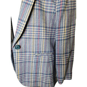 Vintage late 1980's to early 1990's blue, white, yellow, and red blazer.