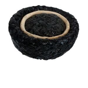 Vintage Lucila Mendez Raffia Cellophane Pearl Ribbon Pillbox Hat Size Large READ