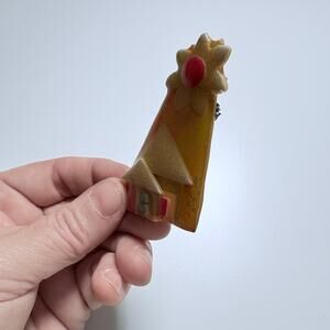 Vintage Lucinda Yates Yellow "House Pin" Brooch - Sun Two Houses - 1990s Jewelry