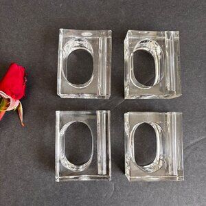Vintage Lucite Acrylic Napkin Rings Clear Bud Set of 4 Mid Century