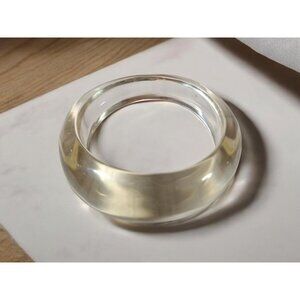 Step into the elegance of the 1950s with this stunning Vintage Modernist Clear Lucite Chunky Bangle Bracelet. Featuring a sleek and minimalist design, this bangle is crafted from clear Lucite, giving it a unique and contemporary look. Perfect for adding a touch of vintage charm to any outfit, this bold accessory is a must-have for collectors and fashion enthusiasts alike.
