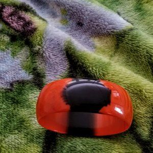 Vintage Lucite Pumpkin Orange & Black Spot Bangle + Bonus Orange Bakelite/Lucite Bangle