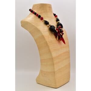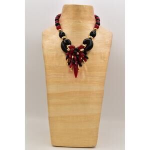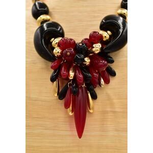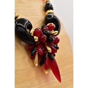 Vintage Lucite Beaded Statement Necklace Bib Black Red Gold Chunky 1970s BinBL