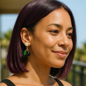 Add a touch of summer whimsy to your outfit with these adorable vintage west Germany lucite black plum clip-on earrings! These earrings are crafted from lucite and feature a black plum design. They are lightweight & comfortable to wear, making them perfect for all-day wear. The clip-on closure ensures a secure fit. Whether you're dressing for a day at the beach, a picnic in the park, or a night out on the town, these earrings are sure to add a touch of fun & flair to your look.