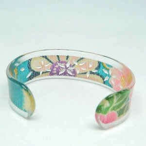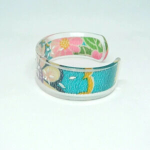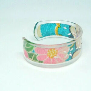 Vintage Lucite Flower Reverse Carved Clear Rhinestone Bangle Bracelet