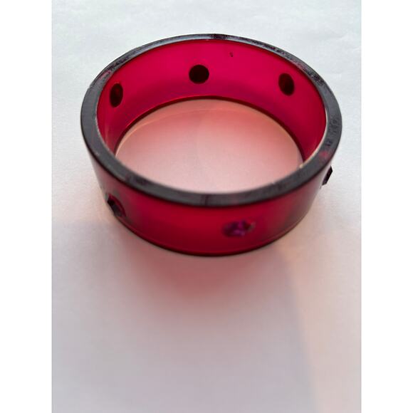 Vintage Lucite Plastic Bangle Bracelet with Rhinestones Red / Pink