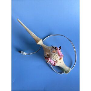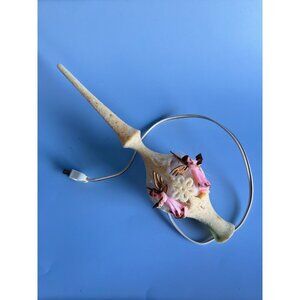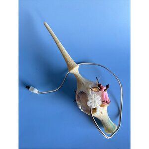 This vintage Christmas tree topper adds a nostalgic touch to your holiday decor. Crafted from lucite, it features two pink angels with wings, surrounded by a soft glow. The unique flocked design and rare find make it a standout piece for collectors and enthusiasts.