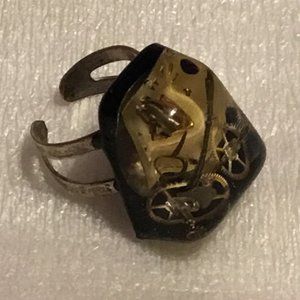 This is a very cool and vintage Steampunk fashion Lucite. clear plastic or resin ring with old Swiss watch parts sealed inside. Check out the gears and the other tiny parts inside. Approximate size 8 to 9. Thanks for looking and any decent offer will be gladly accepted on anything.