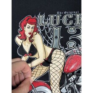 Vintage Lucky 13 Shirt Mens XL Pinup Girl Graphic Biker Made In USA