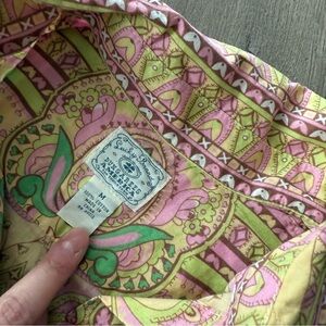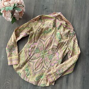 Vintage Lucky Brand Dungarees America Boho Floral Green & Pink Button Up Top