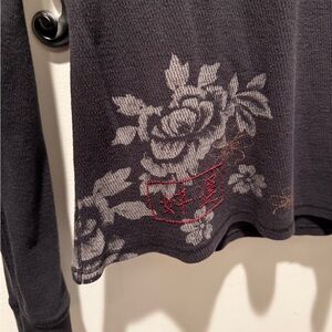 Vintage Lucky Brand Tiger Flower Embroidered Long Sleeve L