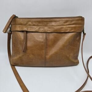 Vintage Lucky Brand Women's Leather Double Zipper Crossbody Bag Handbag Brown