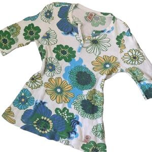 Vintage Lucky Brand Y2K Floral Henley Women's Top Waffle Texture 3/4 Sleeve L