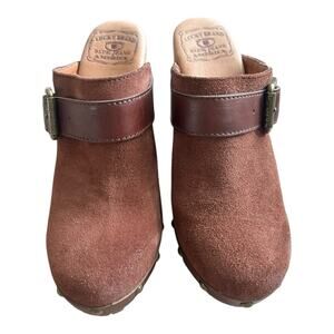 Lucky Brand suede clogs 7. Vintage Lucky. Some wear to the inside lining. Heel height is 4.5”